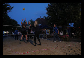 Mensen vragen mij waarom de hoofdweg in Wedde is afgesloten. Dat is heel eenvoudig. Zojuist is voor eetcafé De Leeuw het Streetbeach Night Volleyballen begonnen.
